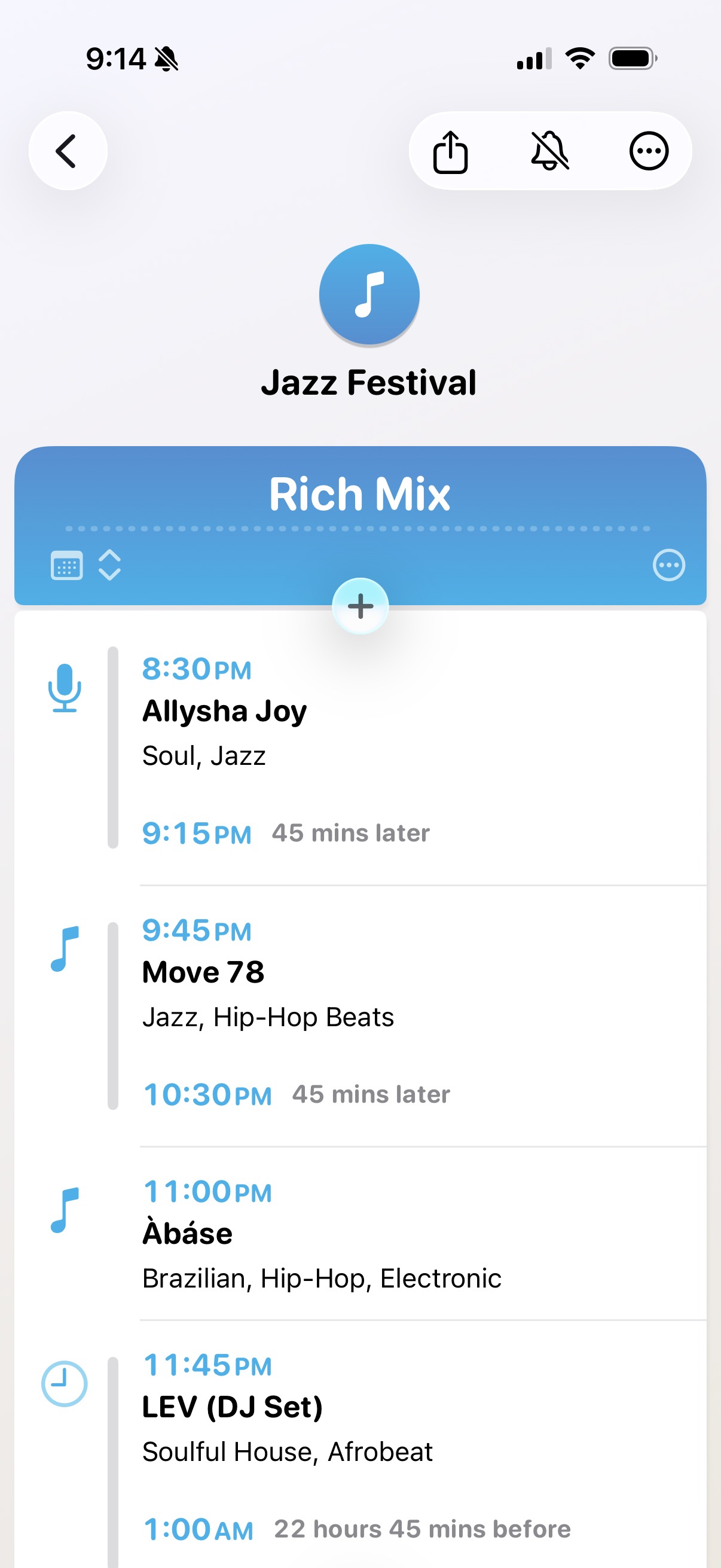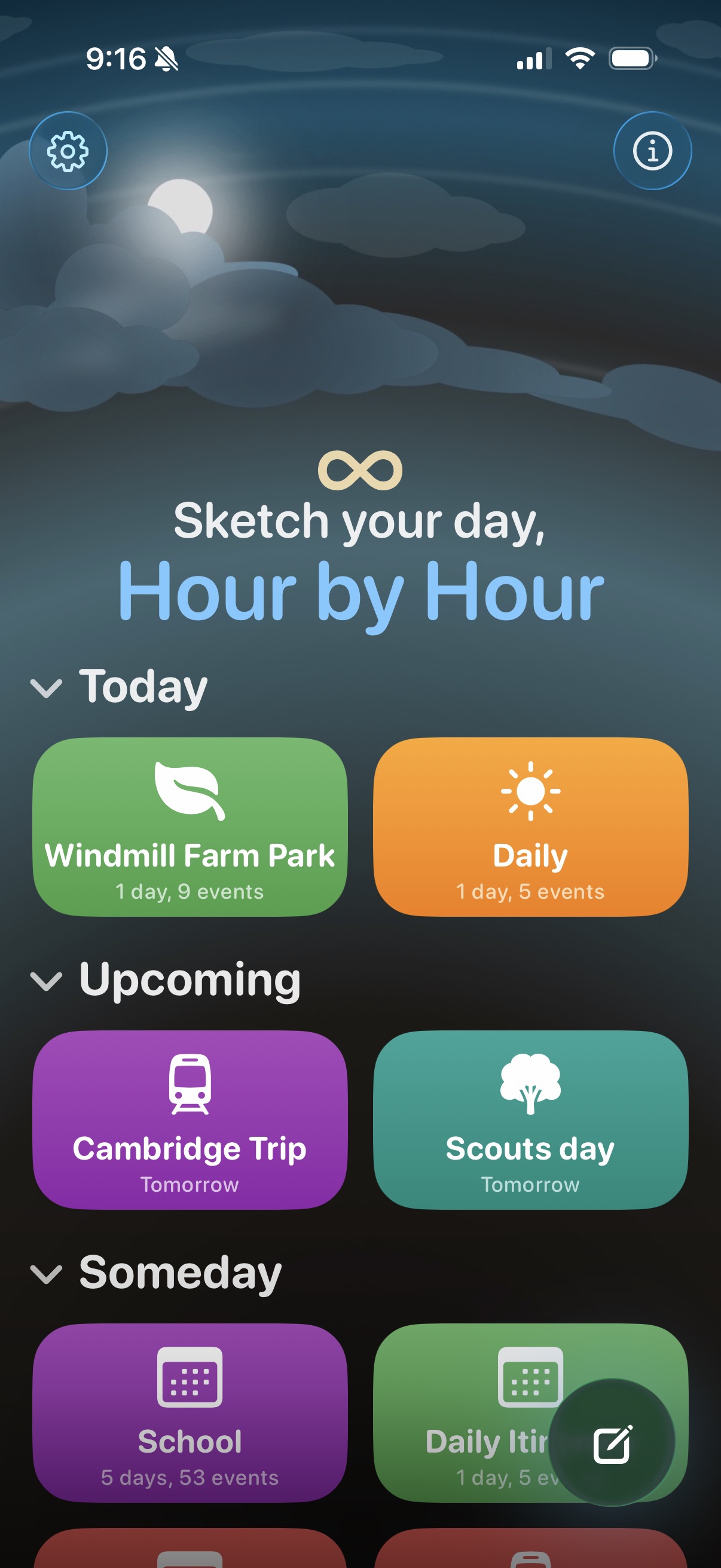 - Import from a photo: Snap a printed program, concert listing, or conference schedule and import it with AI: Hour by Hour turns the image into events you can follow along to.